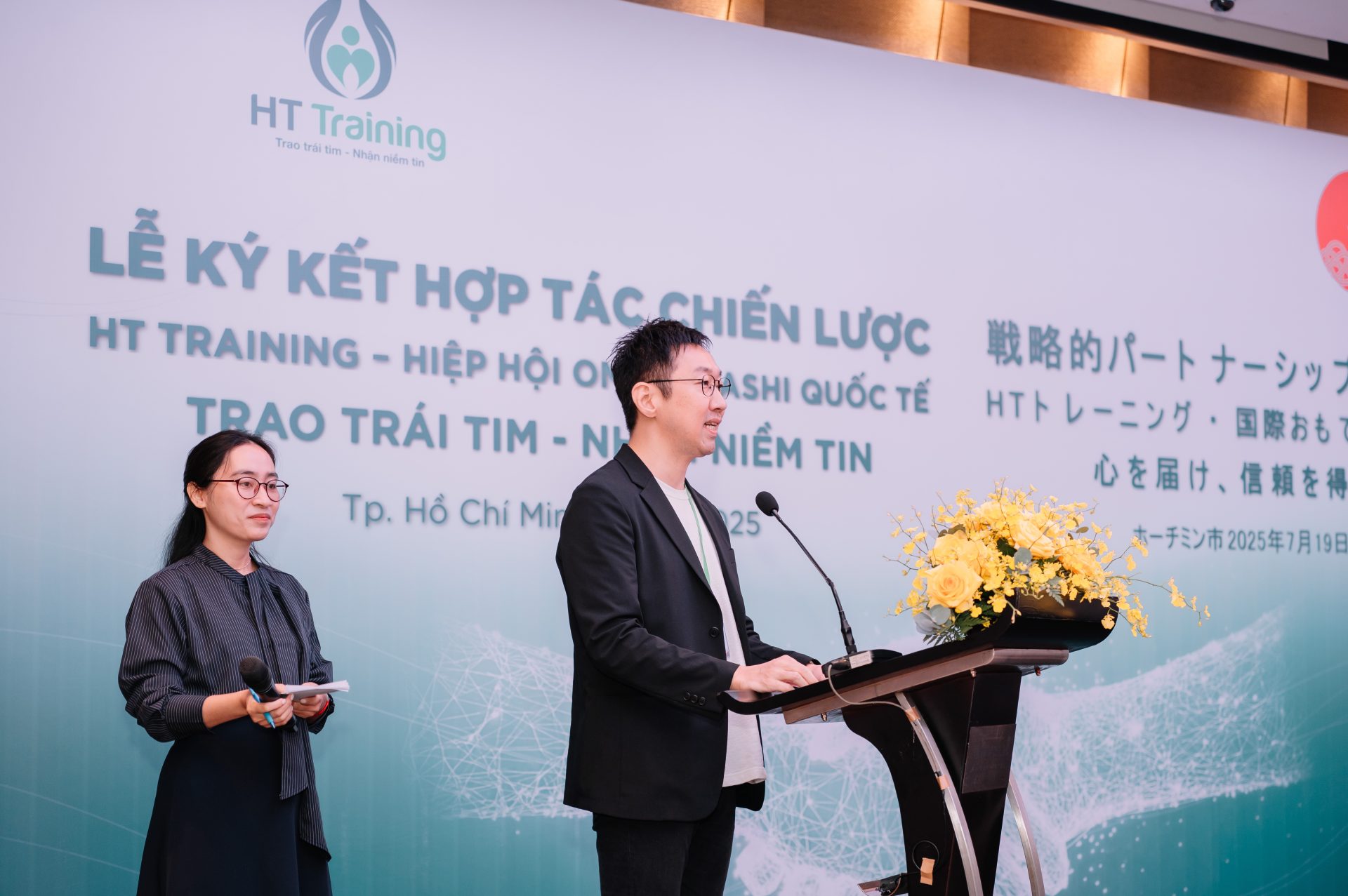 HT Training ký kết hợp tác chiến lược với Hiệp hội Omotenashi Quốc tế, đánh dấu bước khởi đầu quan trọng trong hành trình đưa đào tạo dịch vụ khách hành tận tâm theo triết lý Omotenashi đến gần hơn với doanh nghiệp Việt Nam. Với mong muốn đưa triết lý Omotenashi của Nhật có thể bén rễ, chuyển hóa để phù hợp với văn hóa đội ngũ nhân sự tại Việt Nam. Hợp tác này mang đến các giá trị then chốt cho doanh nghiệp Việt, từ chương trình đào tạo dịch vụ khách hàng tận tâm theo triết lý Omotenashi, đến chứng nhận do Hiệp Hội Omotenashi Quốc Tế cấp, khảo sát đánh giá chất lượng về năng lực dịch vụ khách hàng của đội ngũ nhân viên, trải nghiệm tại Nhật Bản. HT Training mong muốn đồng hành cùng các doanh nghiệp kiến tạo một Cộng đồng Dịch vụ tận tâm, để một ngày nào đó, khi thế giới nhắc đến dịch vụ Made in Vietnam, đó sẽ là sự tinh tế, ấm áp và chu đáo từ trái tim.