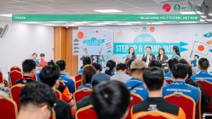 Trong không khí cởi mở và đầy cảm hứng, sinh viên Melbourne Polytechnic không chỉ lắng nghe, mà còn mạnh dạn đặt câu hỏi, trao đổi trực tiếp cùng diễn giả. Đó chính là tinh thần “Step Up” – dám bước lên; và “Stand Out” – dám khác biệt.