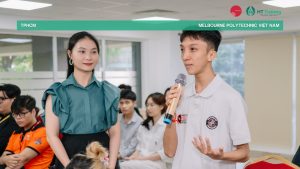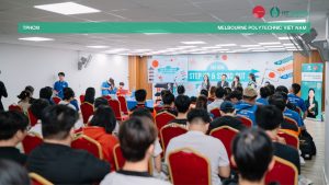 Trong không khí cởi mở và đầy cảm hứng, sinh viên Melbourne Polytechnic không chỉ lắng nghe, mà còn mạnh dạn đặt câu hỏi, trao đổi trực tiếp cùng diễn giả. Đó chính là tinh thần “Step Up” – dám bước lên; và “Stand Out” – dám khác biệt.