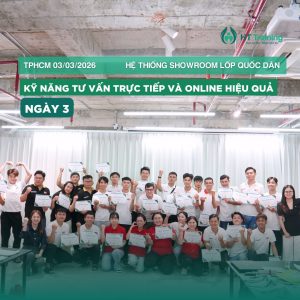 Sau những buổi đào tạo đầu tiên tập trung vào tư duy và tiêu chuẩn dịch vụ, chương trình đào tạo cùng Hệ thống Showroom Lốp Quốc Dân tiếp tục bước sang Module 3: Thực hành kỹ năng tư vấn theo tiêu chuẩn, nơi các học viên bắt đầu đi sâu hơn vào một yếu tố rất quan trọng trong trải nghiệm khách hàng: kỹ năng tư vấn và giao tiếp trực tiếp tại cửa hàng cũng như trên các kênh online. Trong môi trường kinh doanh dịch vụ, đặc biệt là tại các showroom lốp xe, mỗi cuộc trò chuyện với khách hàng không chỉ đơn thuần là trao đổi thông tin sản phẩm mà còn là cơ hội để xây dựng sự tin tưởng và tạo ra quyết định mua hàng.